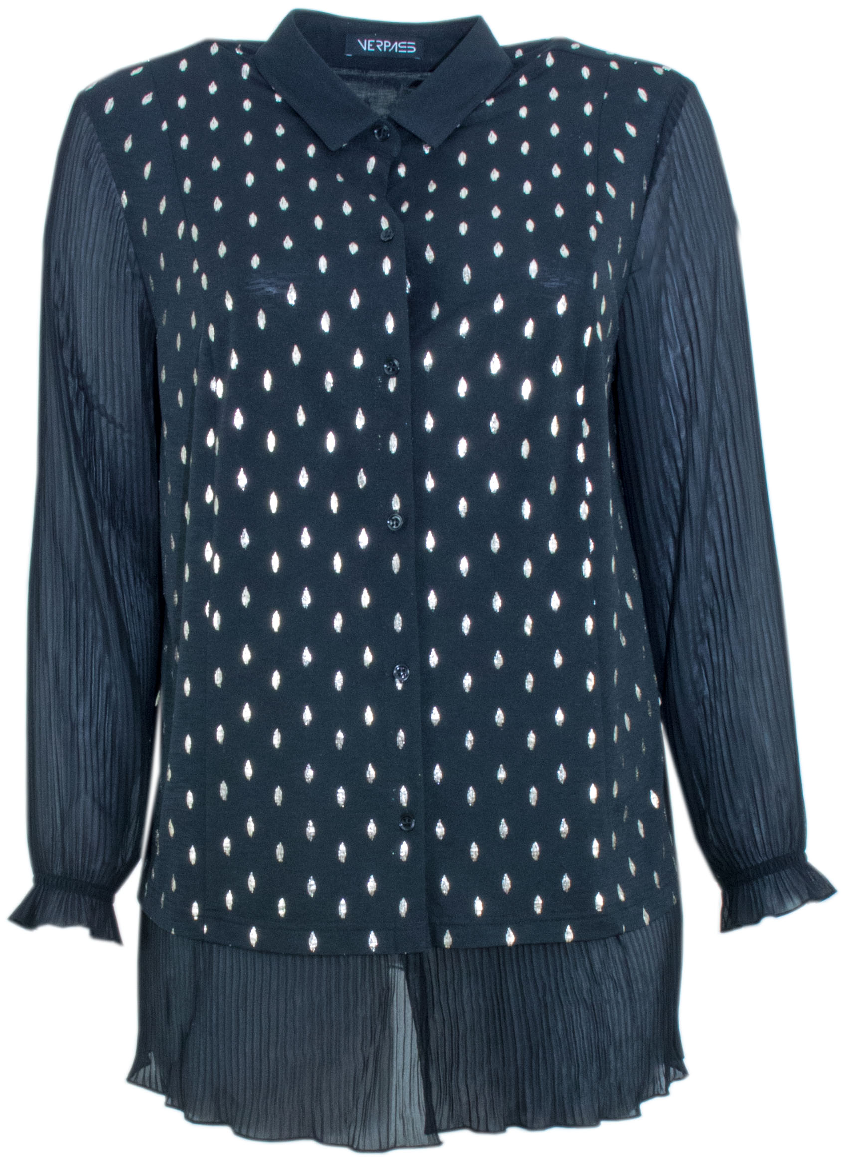 Metallische Lurex Tupfen auf schwarzem Untergrund machen diese Bluse ein besonders edles Teil