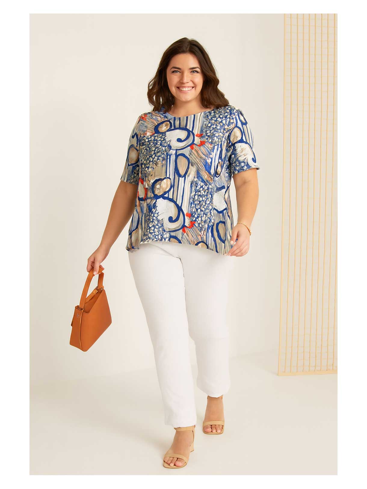 | Styling Tipps: Mit Weiß strahlen: Die Kombination mit weißer Hose wirkt frisch und sommerlich Mit Denim wird das Outfit alltagstauglich und bekommt einen modernen Casual Touch Gezielte Accessoires: Helle Taschen, goldene Akzente oder dezente Sandalen |