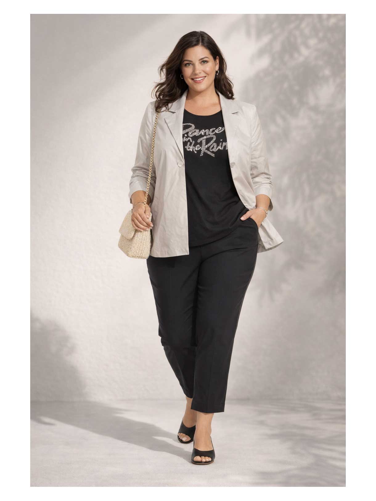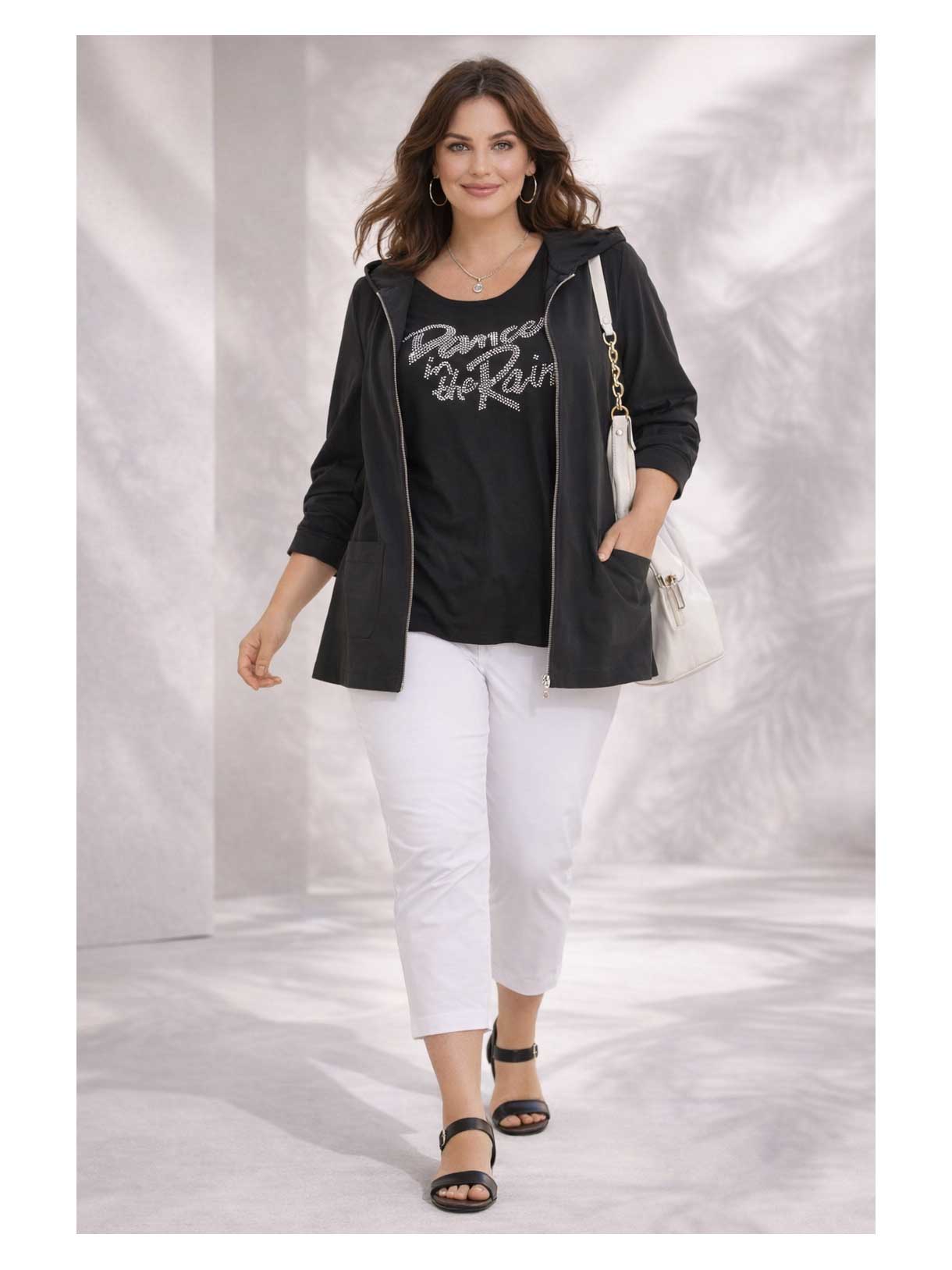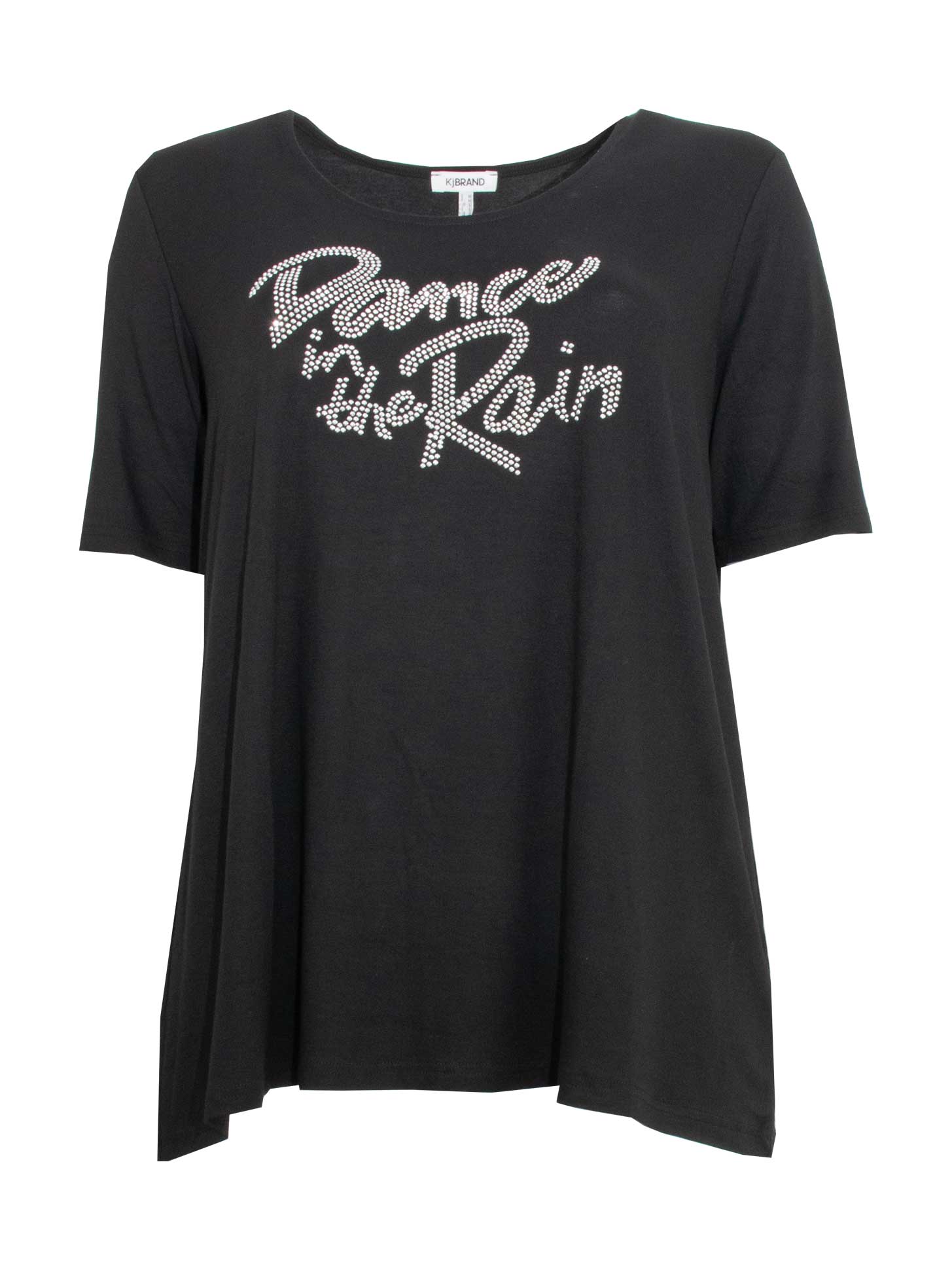 Funkende Strasssteine auf der Vorderseite setzen ein selbstbewusstes Statement bei dem Kurzarm-Shirt von Kj BRAND. Hochwertige Viskosemischung in Schwarz bringt Glanz und Bewegung in den Look.