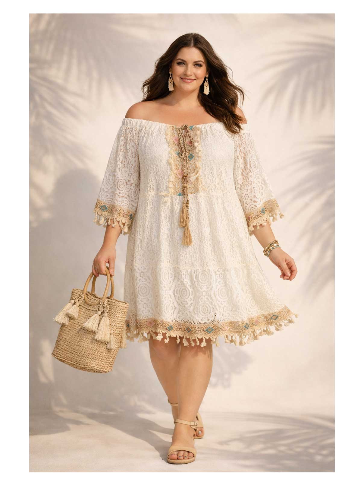 Mit Bändel gezogener Carmenausschnitt